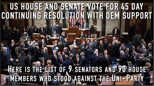 Lists of Patriot Congressmen who voted AGAINST the 45 Day Continuing Funding Resolution